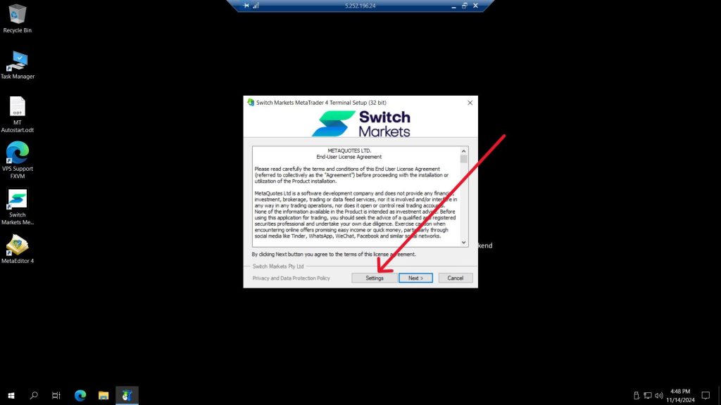2. Go to Downloads folder and run the same MetaTrader installer in the VPS
