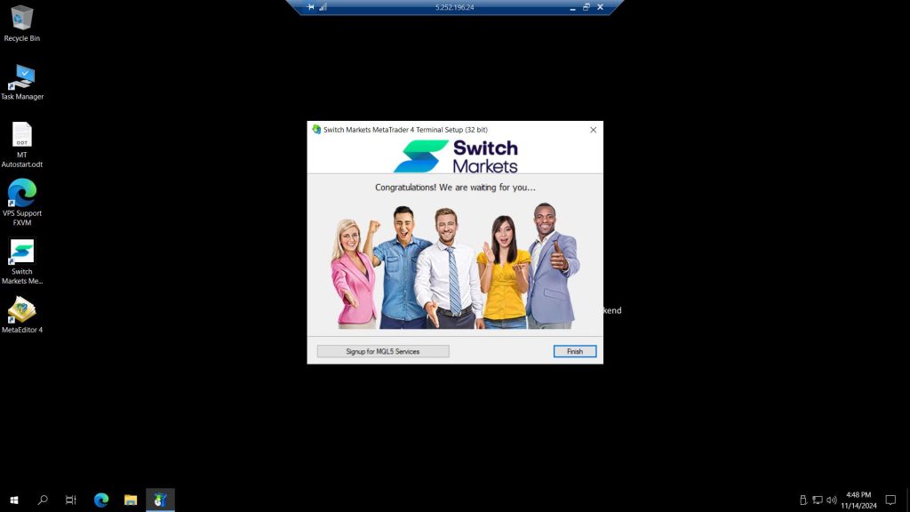 In this tutorial we will show you how to install MetaTrader 4 trading platform on your FXVM VPS/Server.